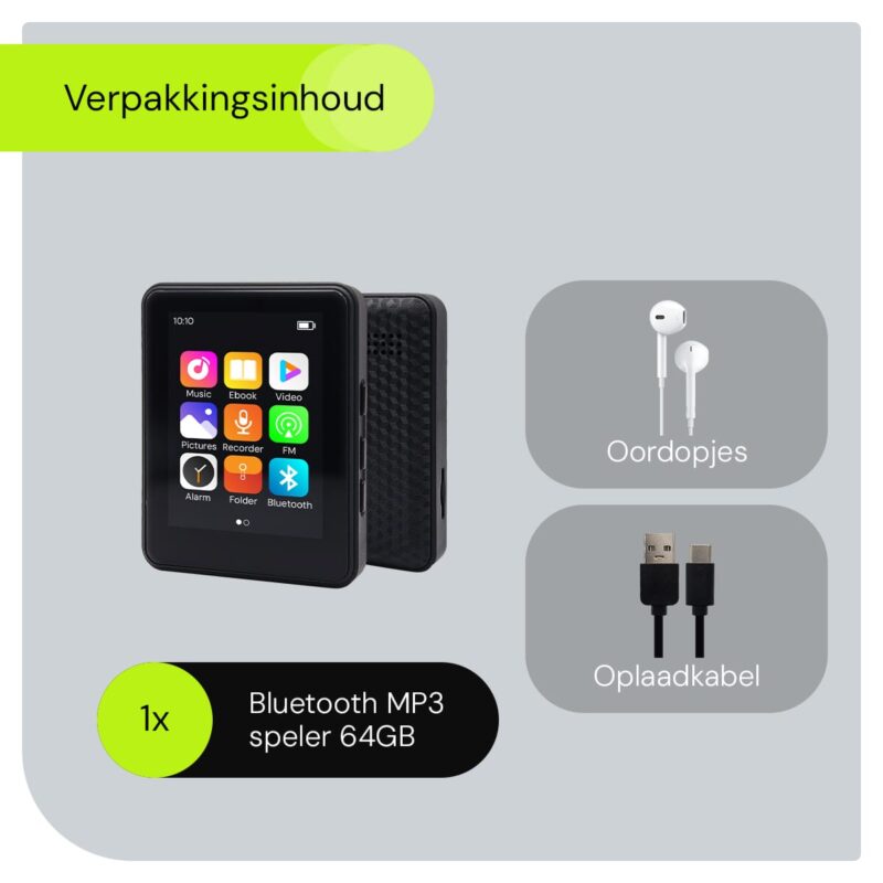 MP3 Speler Bluetooth met 64GB – Compacte MP4 Speler