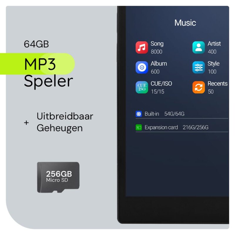 - Grote opslagcapaciteit: Met 256GB+64GB intern geheugen, heb je ruimte voor al je muziekcollecties.