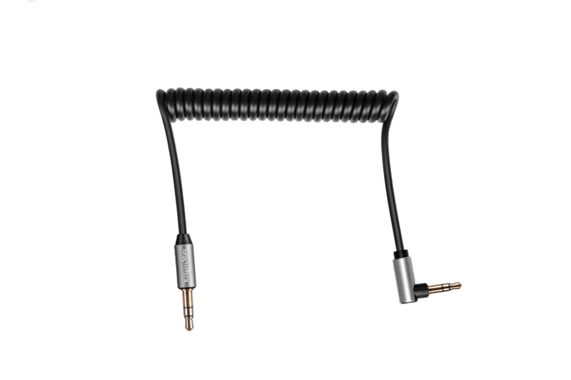De haakse 3.5mm jack connector is ontworpen om ruimte te besparen en de kabel minder kwetsbaar te maken voor beschadigingen, vooral in situaties waar de ruimte beperkt is.