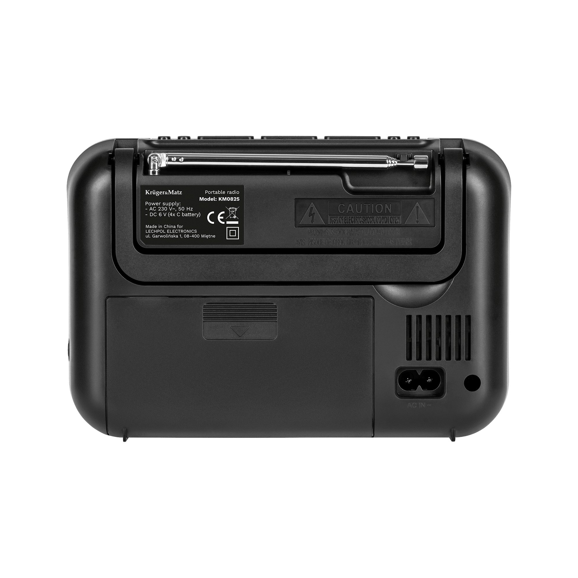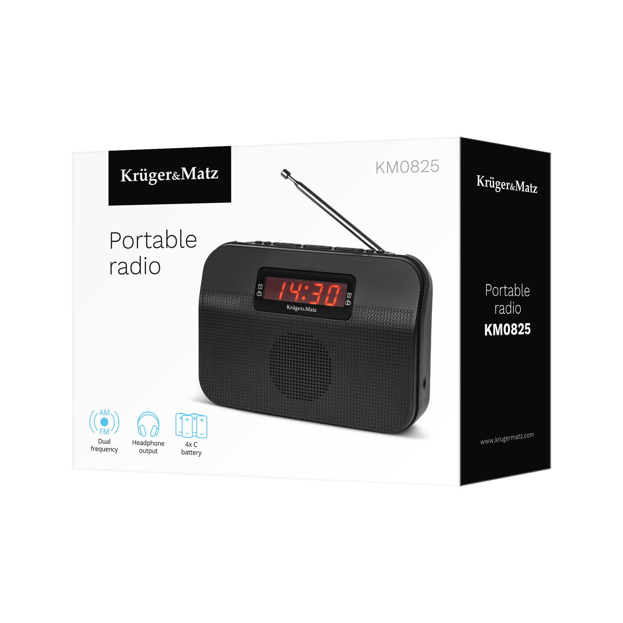 De Krüger&Matz KM0825 werkt op batterijen, waardoor het onafhankelijk is van netstroom. Plaats de batterijen, stel de frequentie in met de draaiknop, en geniet van de radio-ontvangst.