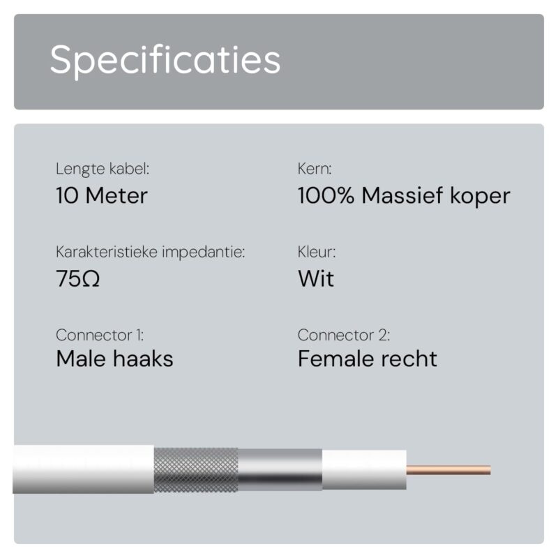 Coaxkabel TV 10 meter – Rechte Female naar Haakse Male