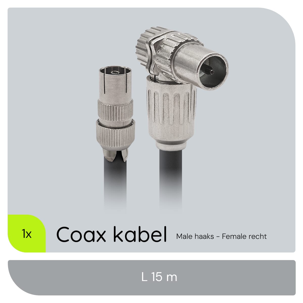 Coaxkabel TV 15 meter – Rechte Female naar Haakse Male