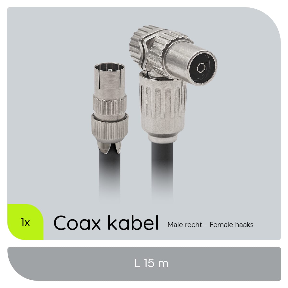 Coaxkabel TV 15 meter – Rechte Male naar Haakse Female