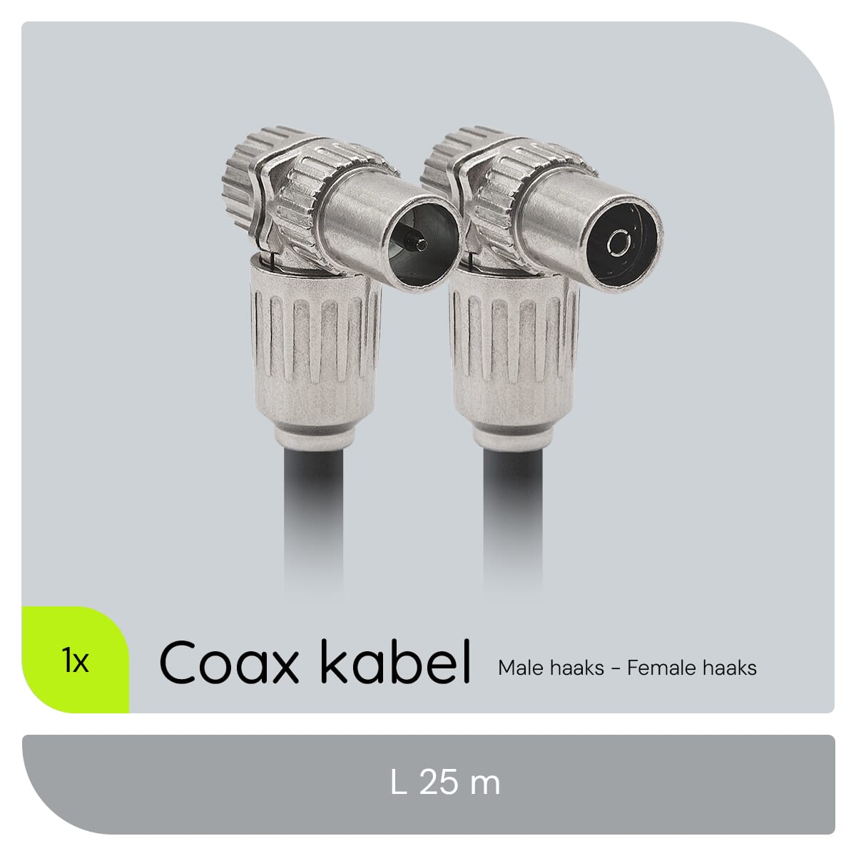 Coaxkabel TV 25 meter – Haakse Male naar Haakse Female
