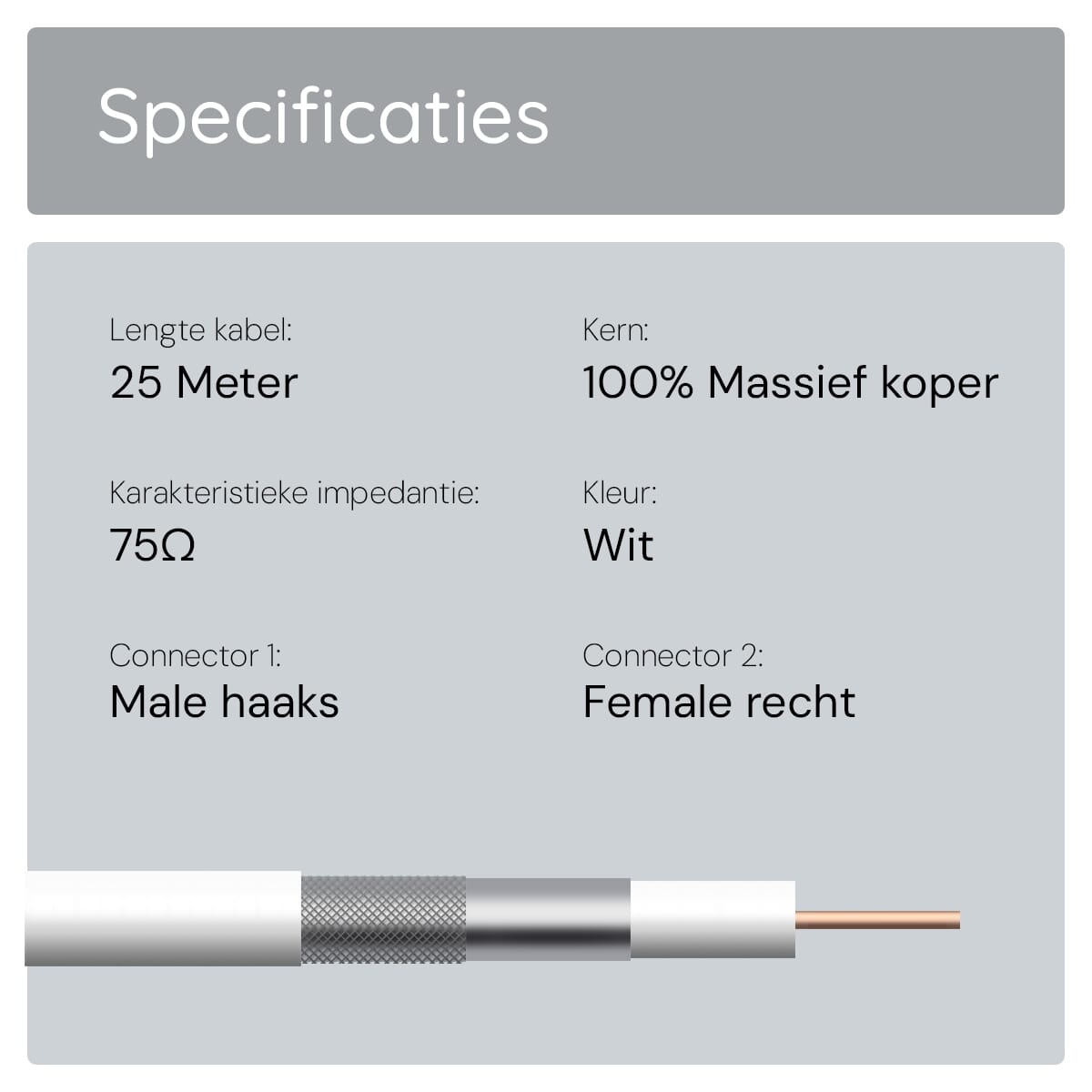 De coaxkabel is voorzien van een massief koperen kern, wat zorgt voor een uitstekende signaaloverdracht. Dit maakt de kabel ideaal voor het ontvangen van storingsvrije televisie- en radiosignalen.