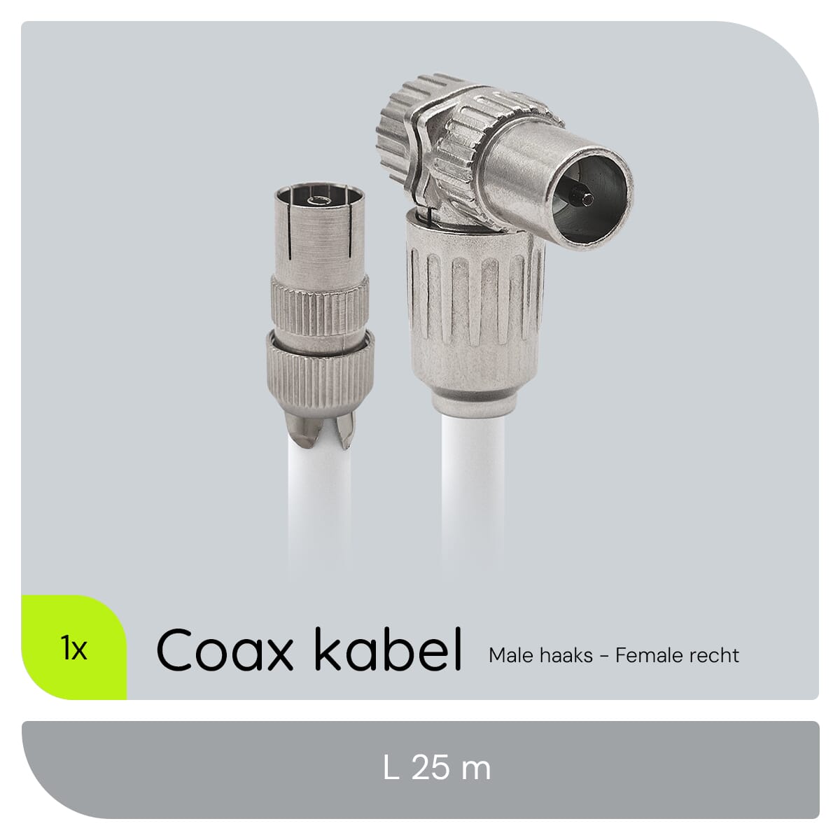Coaxkabel TV 25 meter – Rechte Female naar Haakse Male