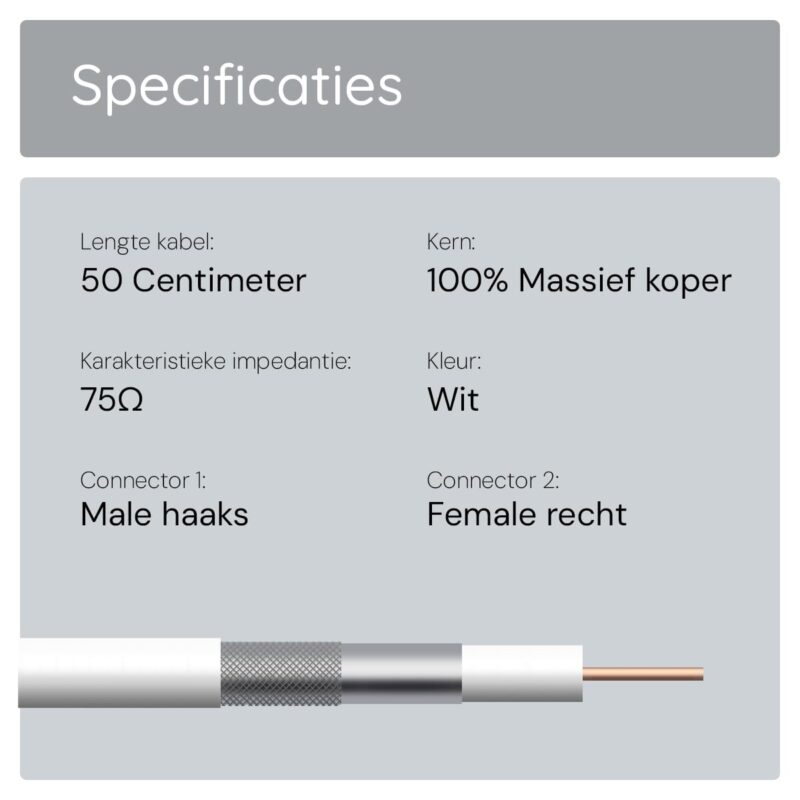 Coaxkabel TV 50cm – Rechte Female naar Haakse Male