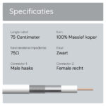 Dankzij de robuuste constructie en de zwarte buitenmantel is deze coaxkabel geschikt voor gebruik buitenshuis. De kabel is bestand tegen diverse weersomstandigheden, waardoor hij duurzaam en betrouwbaar is voor buiteninstallaties.