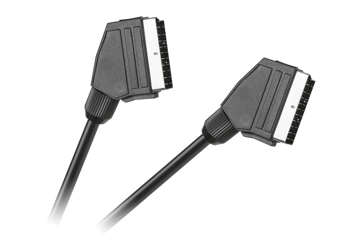De kabel werkt door het verbinden van de SCART-uitgang van een apparaat met de SCART-ingang van een ander apparaat, waardoor audio- en videosignalen kunnen worden overgedragen.