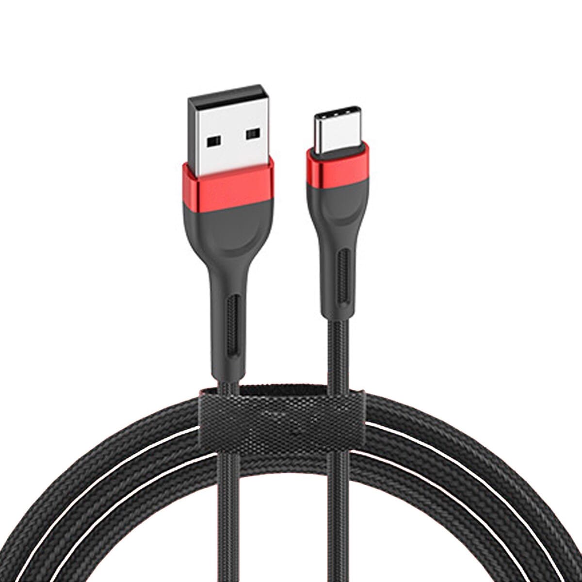VLTG Nylon USB-C naar USB A kabel – 0.50m – Rood