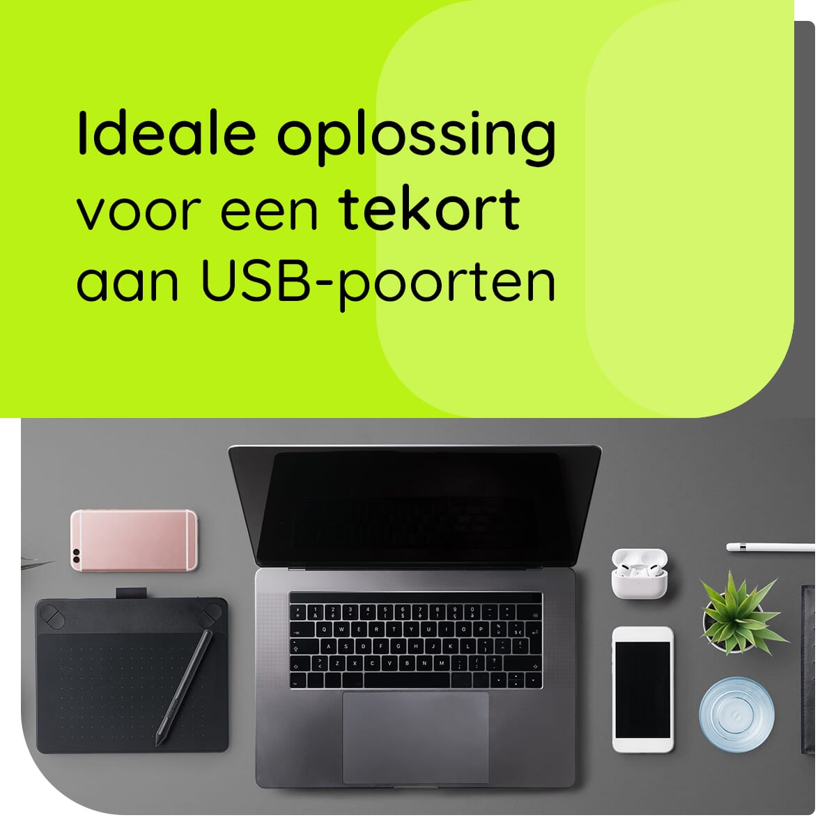 - Compact en draagbaar: Dankzij het slanke ontwerp neem je deze USB splitter gemakkelijk overal mee naartoe.