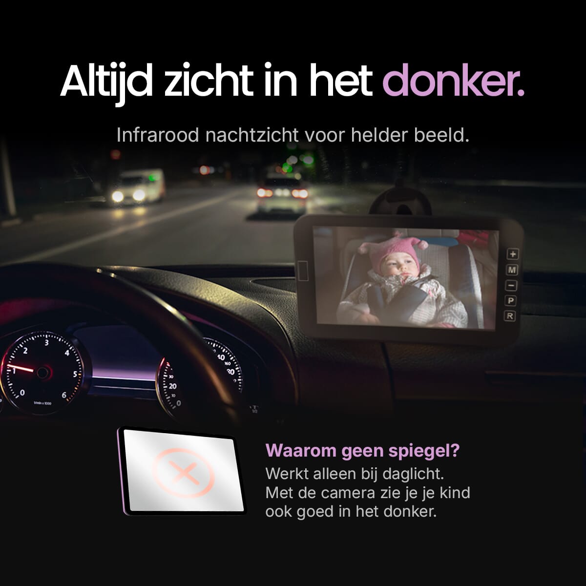 - Kindveilig ontwerp: speciaal ontwikkeld voor veilig zicht op je baby