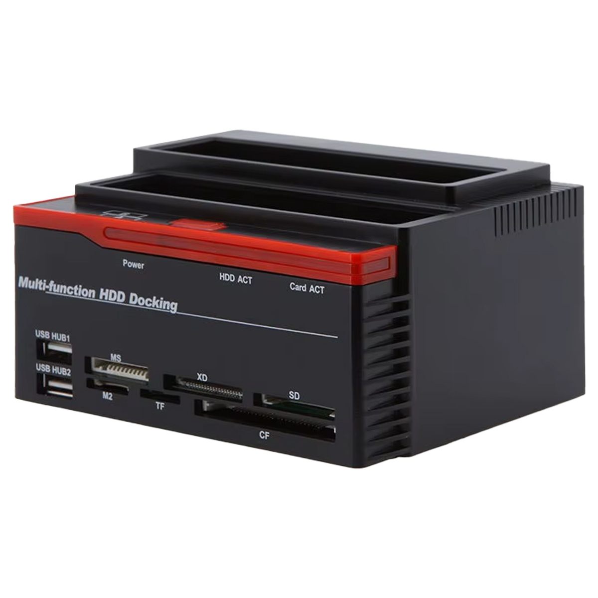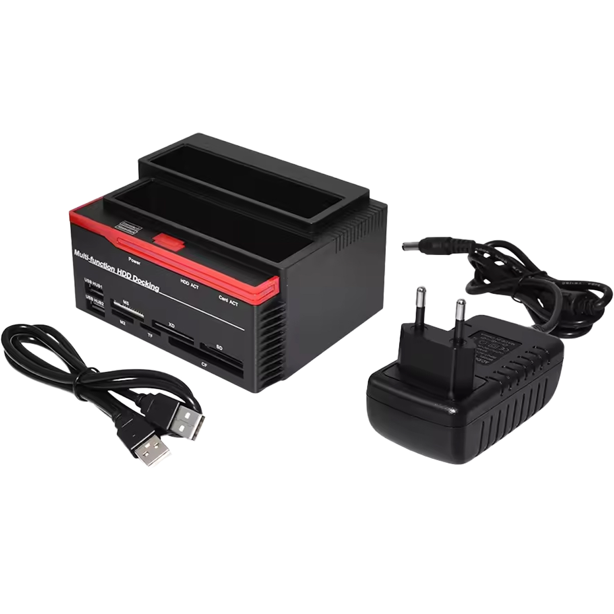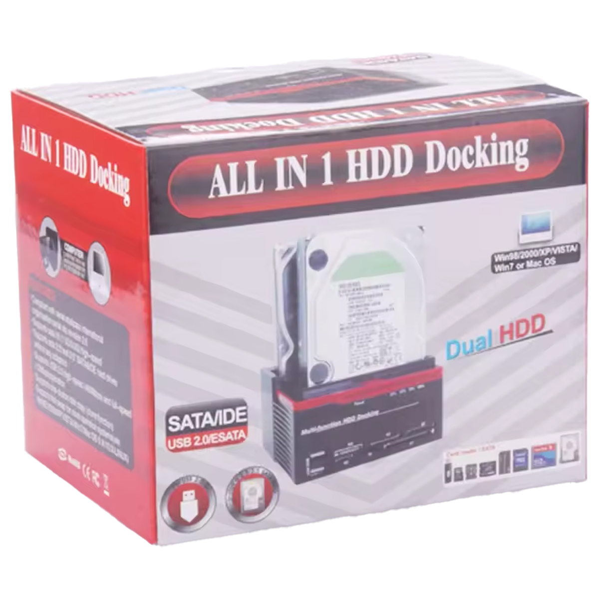 All-in-One Dual HDD Docking Station + Kaartlezer – IDE & SATA – Voor 2.5″/3.5″ HDD & SSD – USB 2.0 – Laptop & Desktop – Offline Kloonfunctie