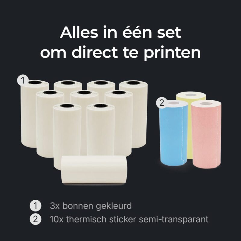 - Inclusief 13 rollen papier: Thermisch printpapier