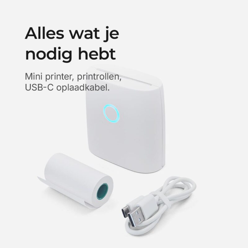 - Compact en draagbaar: past gemakkelijk in je tas of jaszak, zodat je altijd en overal kunt printen.