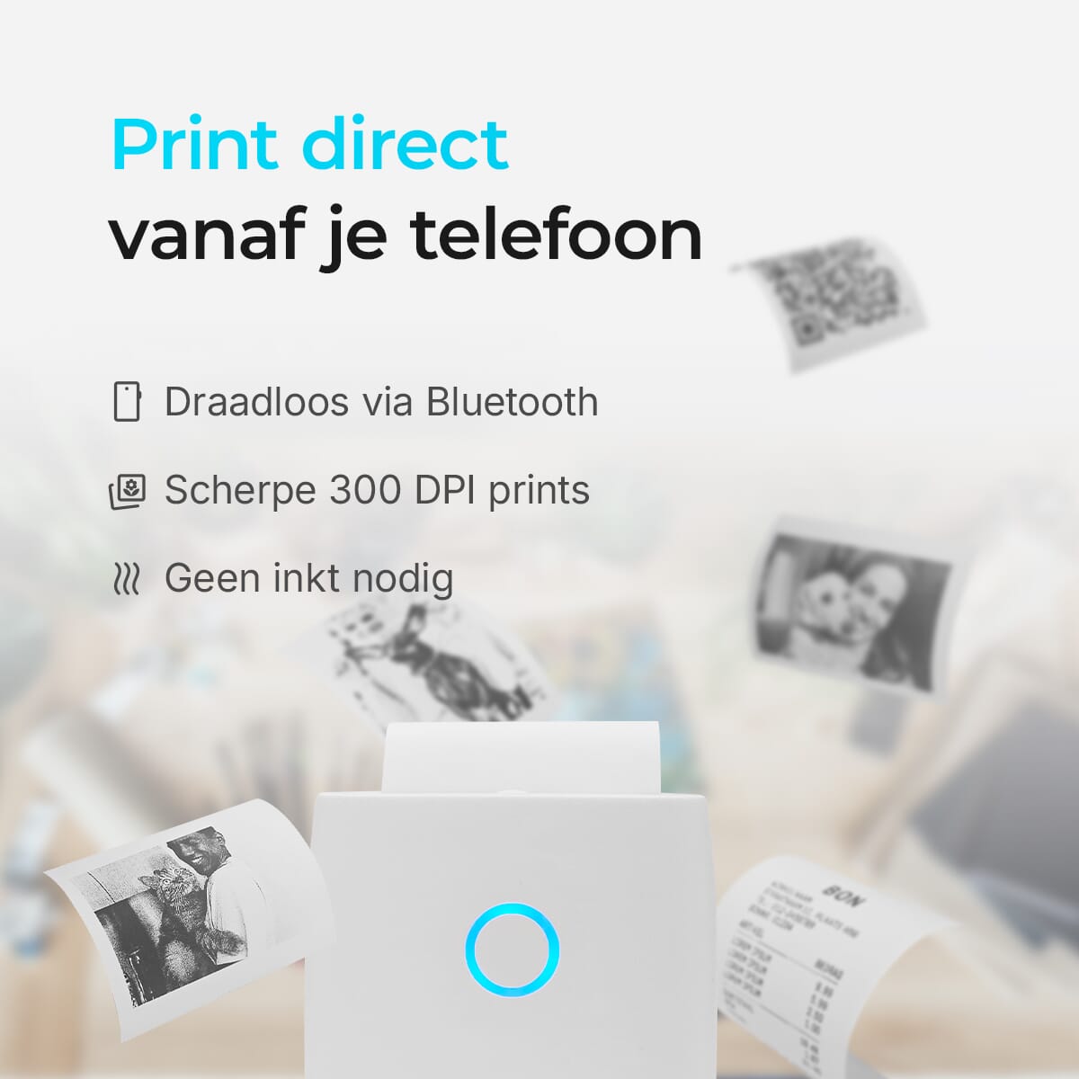 - Veelzijdig gebruik: ideaal als sticker printer, label printer, fotoprinter voor smartphone en etiketten printer.