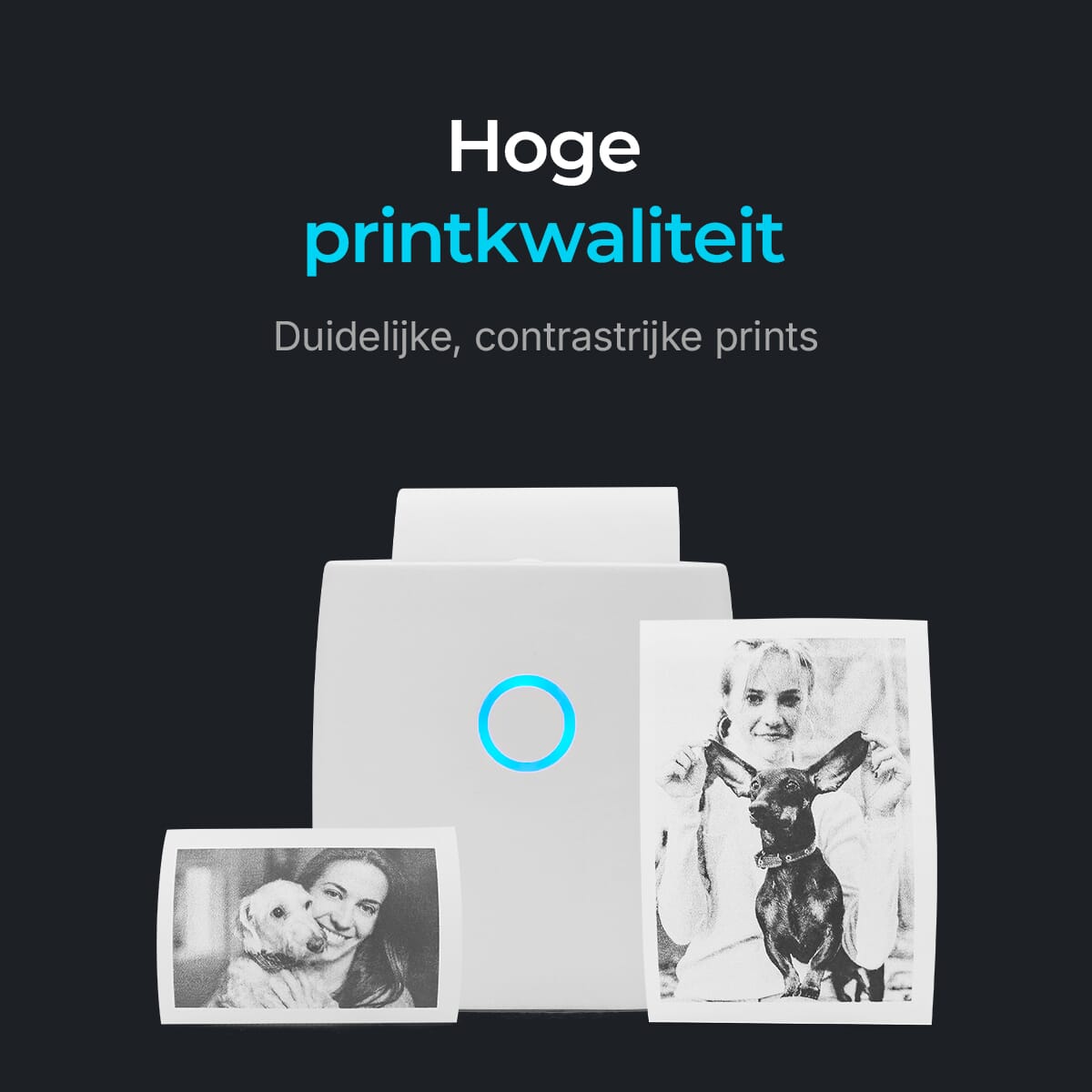 - Hoge resolutie (300 DPI): met 300 DPI resolutie maak je duidelijk scherpere en gedetailleerdere prints dan veel standaard mini printers.