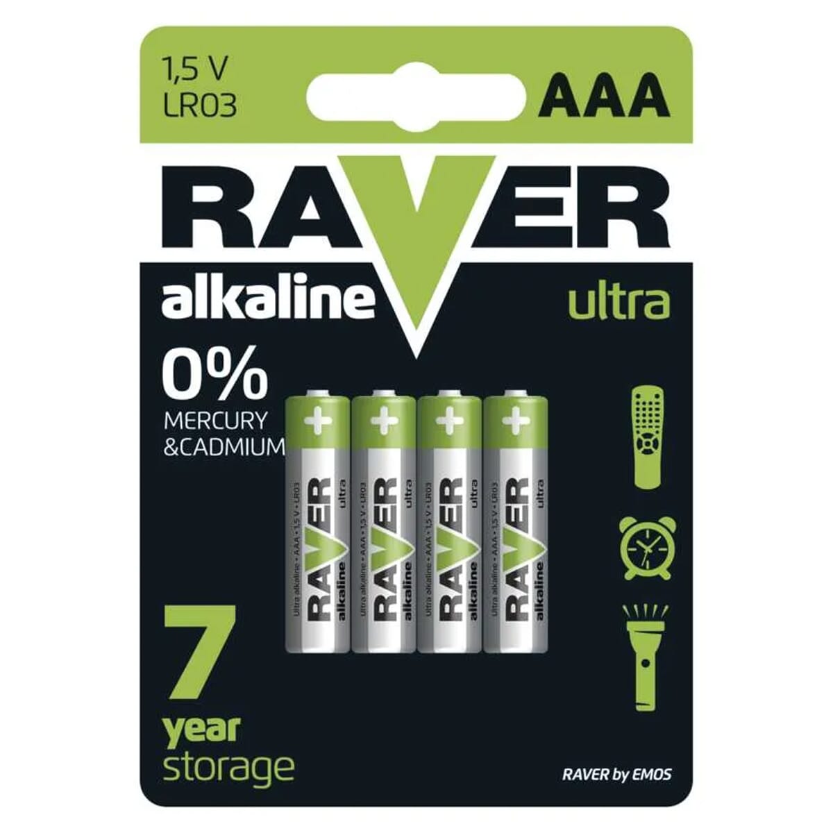 Ontdek de kracht en betrouwbaarheid van Raver Alkaline Batterijen AAA. Deze batterijen zijn de perfecte keuze voor al je dagelijkse apparaten, van afstandsbedieningen tot speelgoed. Met een blisterverpakking van 4 stuks ben je altijd voorbereid en heb je altijd een reserve bij de hand.
