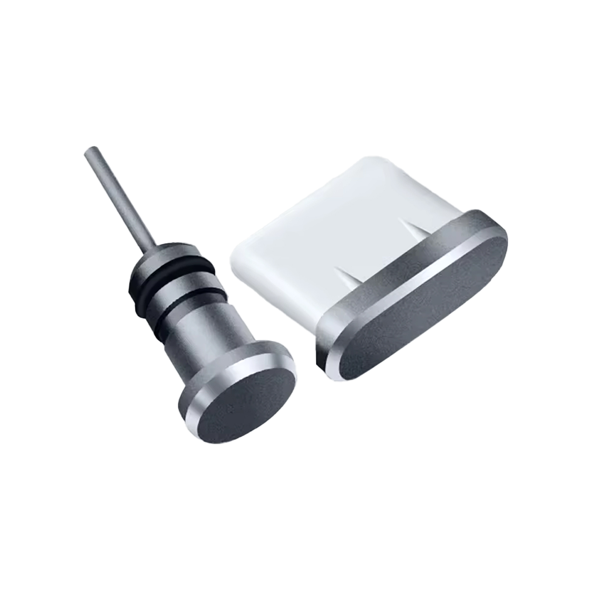 Bescherm je waardevolle apparaten tegen stof en vuil met de stijlvolle en duurzame stof plug voor USB-C en 3.5mm Jack poorten. Deze handige accessoire is een must-have voor iedereen die zijn telefoon, laptop of desktop in topconditie wil houden. Met zijn strakke, grijze metalen afwerking past hij perfect bij elk apparaat en biedt hij een eenvoudige oplossing voor een veelvoorkomend probleem.