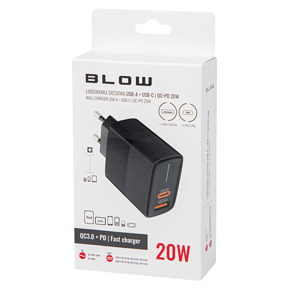 BLOW USB Lader 20W – Snellader Met USB-A & USB-C – QC3.0 + PD – Zwart