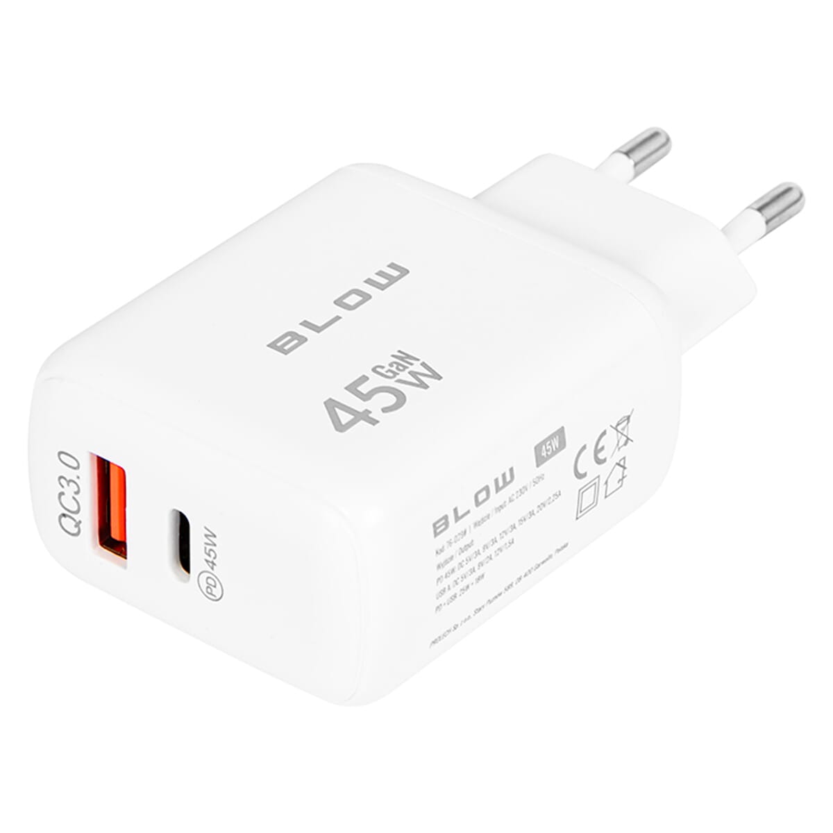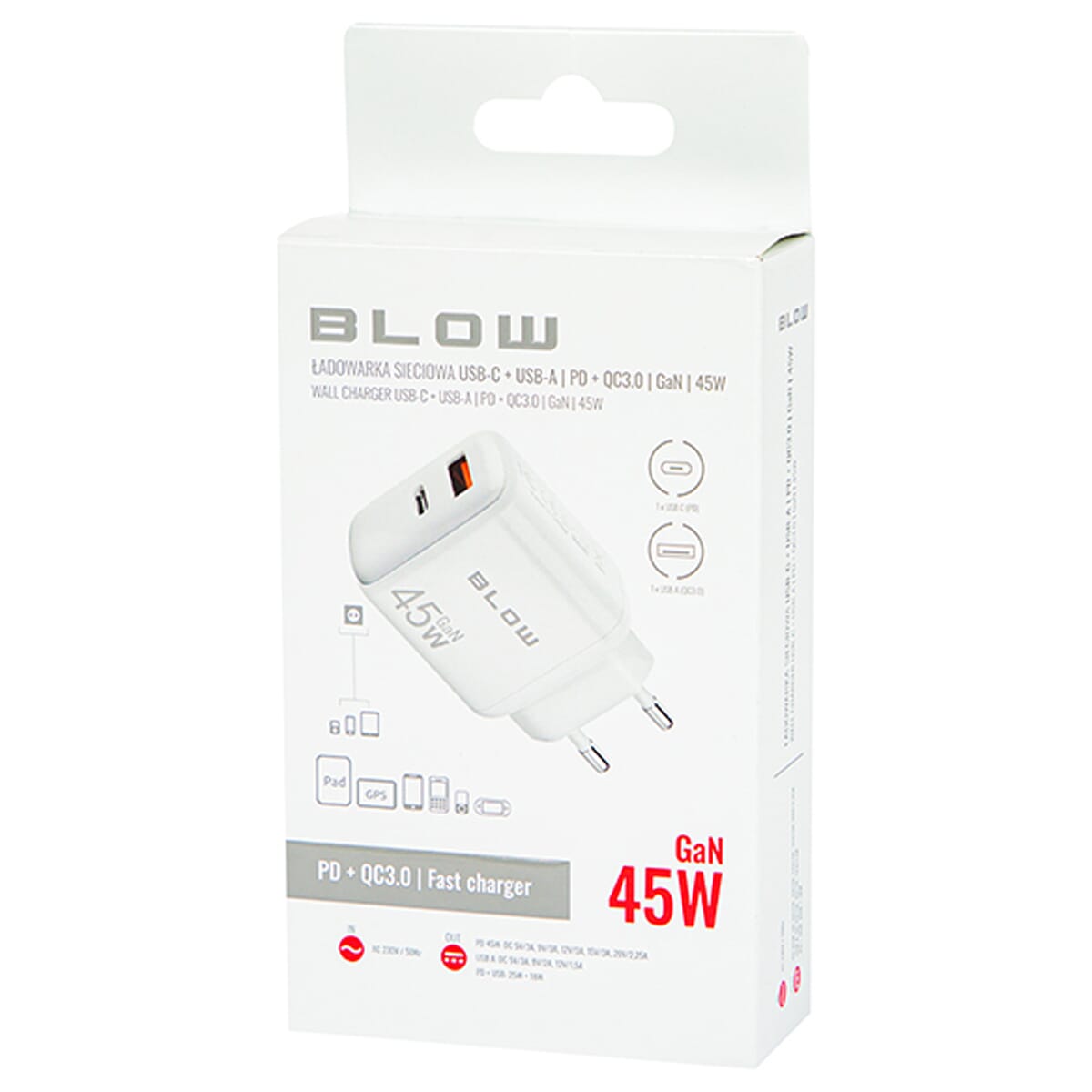 BLOW USB Lader 45W GaN – Snellader met USB-C & USB-A – PD & QC3.0 – Wit