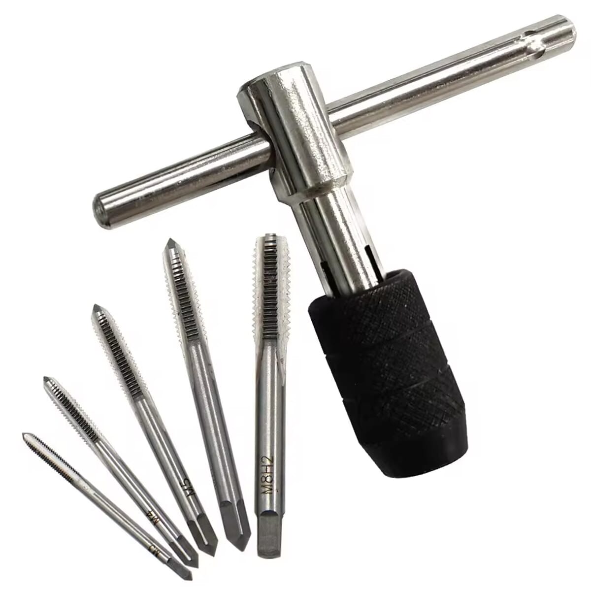 De set bevat zes verschillende maten, van M3 tot M8, waarmee je de meest voorkomende schroefdraden kunt maken. Of je nu een klein of groot project hebt, met deze set heb je altijd de juiste maat bij de hand.