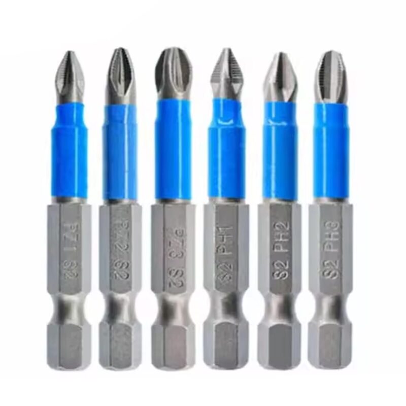 Het anti-slip ontwerp van de bits zorgt ervoor dat ze stevig in de schroefkop blijven zitten, waardoor je nauwkeuriger kunt werken. Dit vermindert de kans op beschadiging van schroeven en oppervlakken, en verhoogt de efficiëntie van je werk.