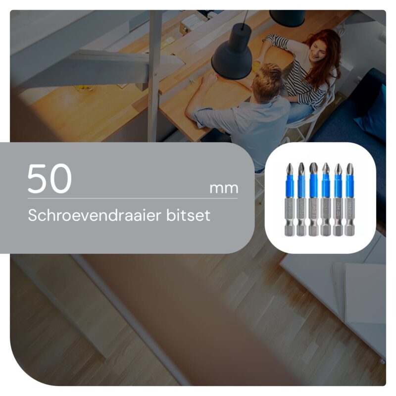 Schroevendraaier bitset 50mm – Magnetisch – S2 – PH1/PH2/PH3/PZ1/PZ2/PZ3 – Anti-slip