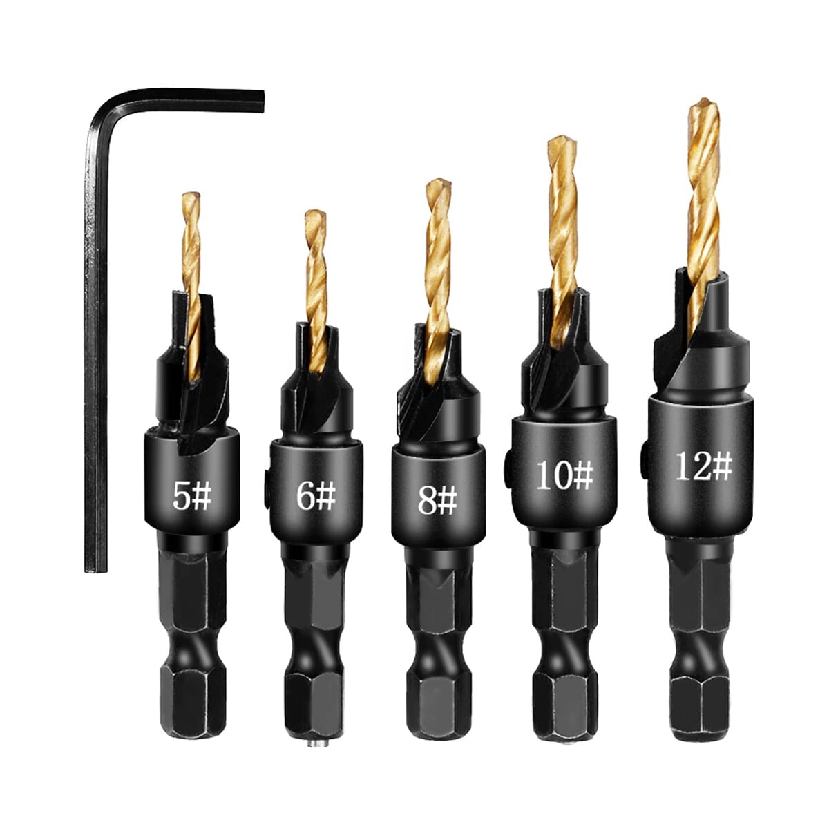 Gemaakt van hoogwaardig staal, biedt deze verzinkborenset een lange levensduur en consistentie in prestaties. Je kunt erop vertrouwen dat deze boren keer op keer uitstekende resultaten leveren, zonder snel te slijten of te breken.