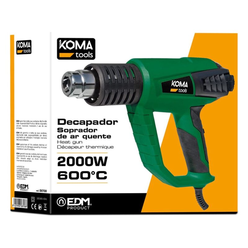 Met een vermogen van 2000W levert het Koma Tools heteluchtpistool voldoende warmte om snel en efficiënt te werken. Dit maakt het ideaal voor zowel lichte als zware klussen.