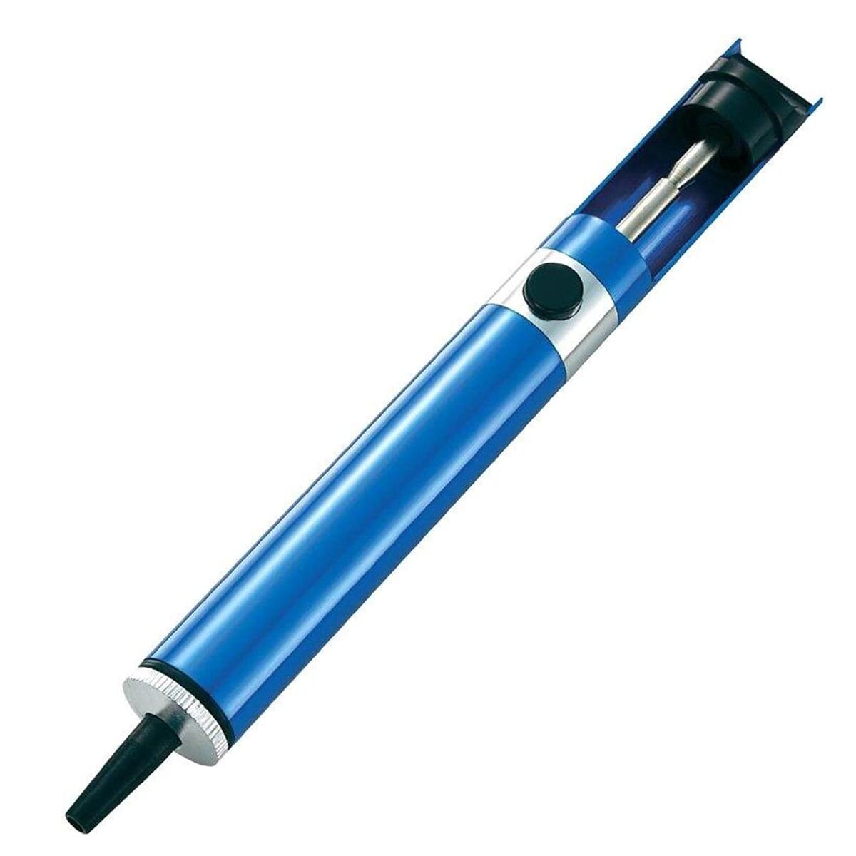Dankzij het ergonomische ontwerp ligt de tinzuiger comfortabel in de hand, waardoor langdurig gebruik zonder vermoeidheid mogelijk is. De bediening is eenvoudig, met een drukknopmechanisme dat gemakkelijk met één hand kan worden bediend.