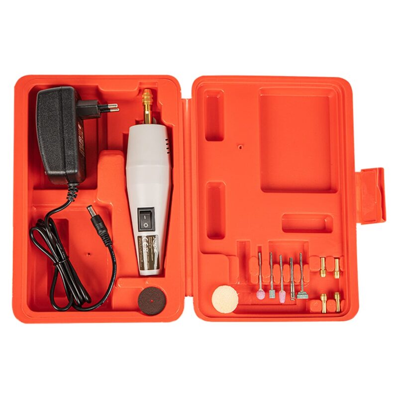 De EXTREME Mini Boor- en Slijpmachine werkt op een 12VDC voeding en kan eenvoudig worden aangesloten op een stopcontact. Met de meegeleverde accessoires kunnen verschillende materialen worden bewerkt door simpelweg de juiste opzetstukken te kiezen en te bevestigen.