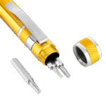 De Rebel Precisie Schroevendraaierset werkt door het eenvoudig verwisselen van de bits in de houder, waardoor je snel kunt schakelen tussen verschillende schroefkoppen. Dit maakt het mogelijk om efficiënt te werken zonder tijd te verliezen.
