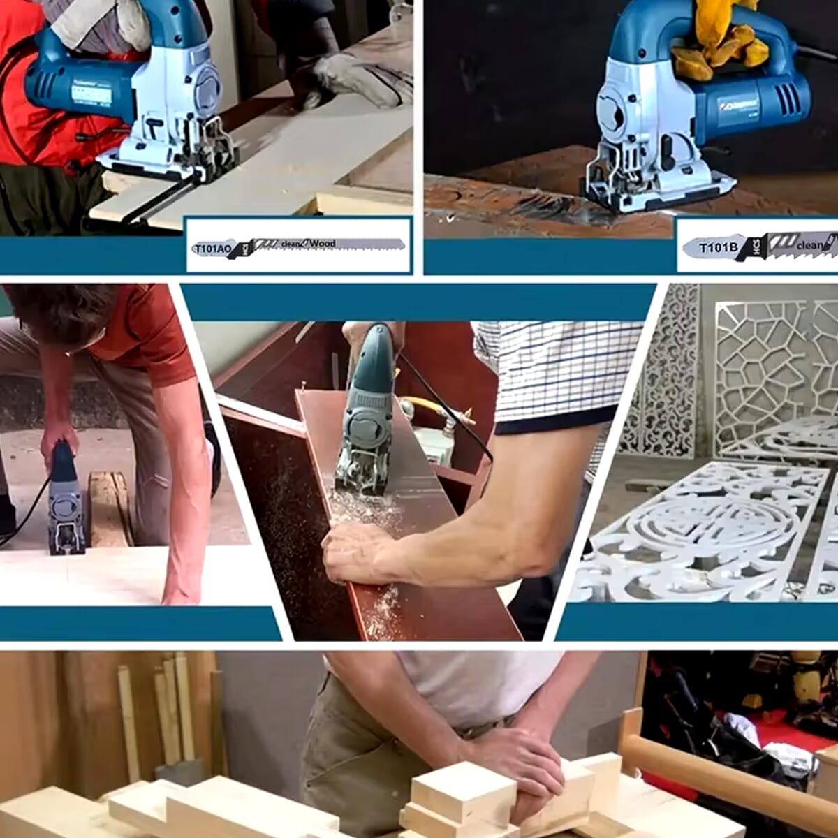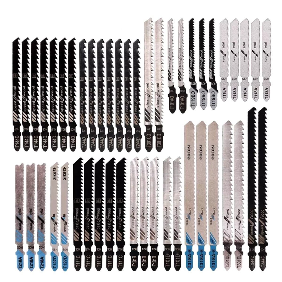 Deze decoupeerzaagbladen set bevat een breed scala aan bladen zoals de T144D, T244D, en T301CD, die ideaal zijn voor snelle en rechte sneden. Voor complexe vormen en fijne afwerkingen zijn de T101AO en T119BO perfect. Elk blad is ontworpen om aan specifieke zaagbehoeften te voldoen, zodat je altijd het juiste gereedschap bij de hand hebt.