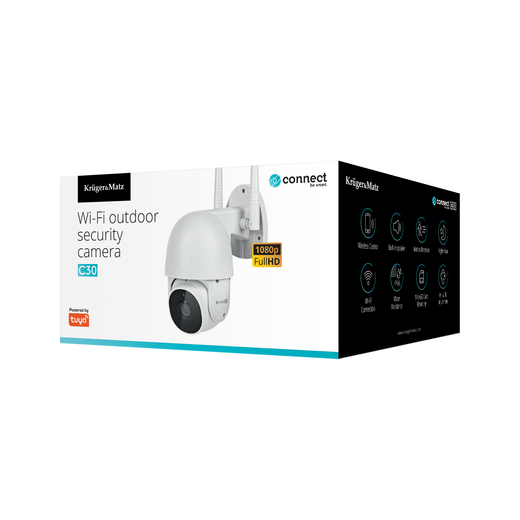 De Krüger&Matz Beveiligingscamera C30 is een geavanceerde WiFi-camera ontworpen voor buitengebruik. Deze camera biedt 1080p Full HD-beeldkwaliteit, waardoor het ideaal is voor het bewaken van je eigendom. Met zijn weerbestendige ontwerp is de camera geschikt voor diverse weersomstandigheden, waardoor het een betrouwbare keuze is voor buitencamerabewaking.