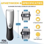 Jouw nieuwe tondeuse is met een duidelijk LED display en speed-control knop erg makkelijk te gebruiken en geeft jou zo volledige controle tijdens het trimmen. Daarnaast is de trimmer volledig waterproof zodat je jouw huisdier ook direct kunt trimmen in de douche.