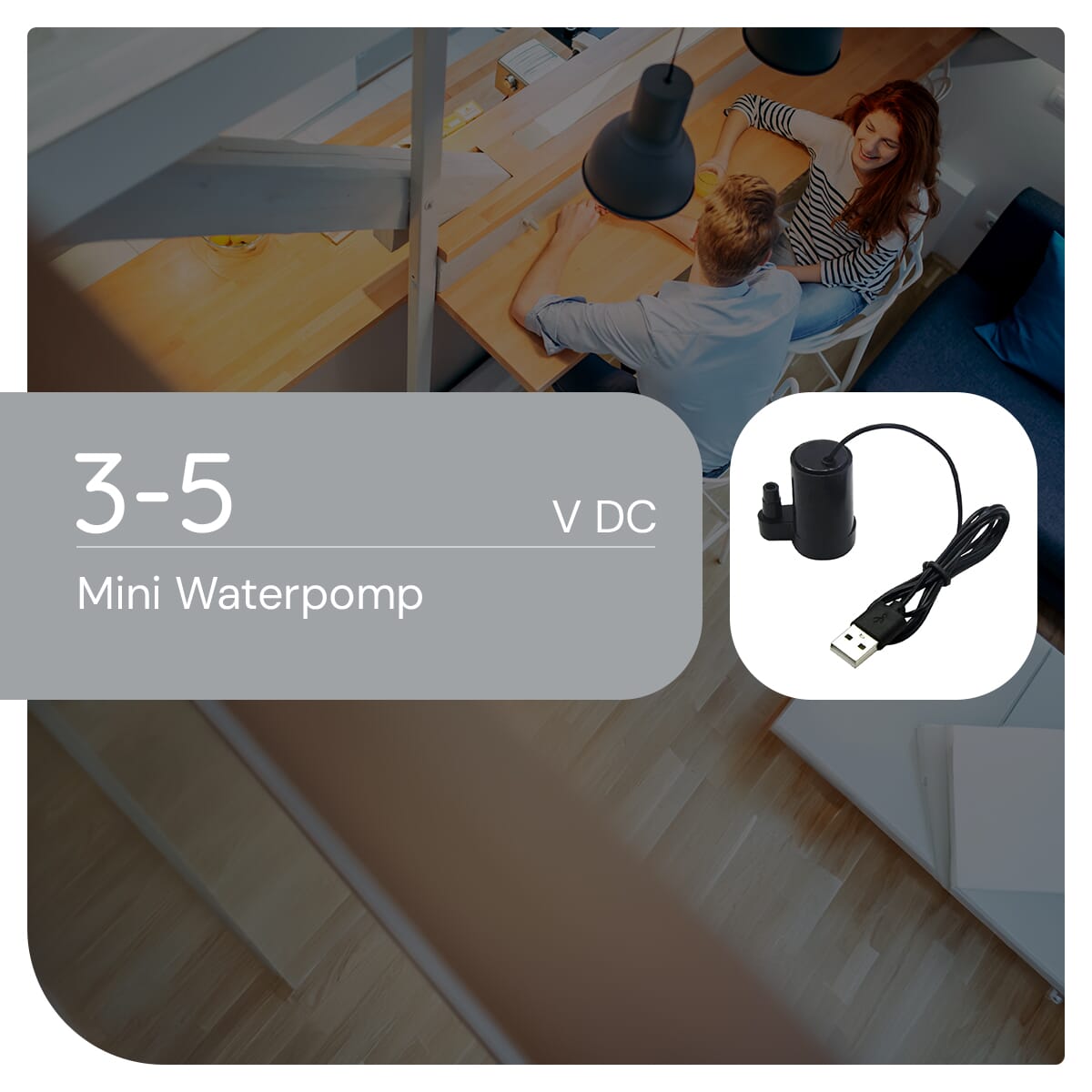 - Hoeveel stroom verbruikt de pomp? De pomp verbruikt slechts 3-5V DC, wat zeer energiezuinig is.