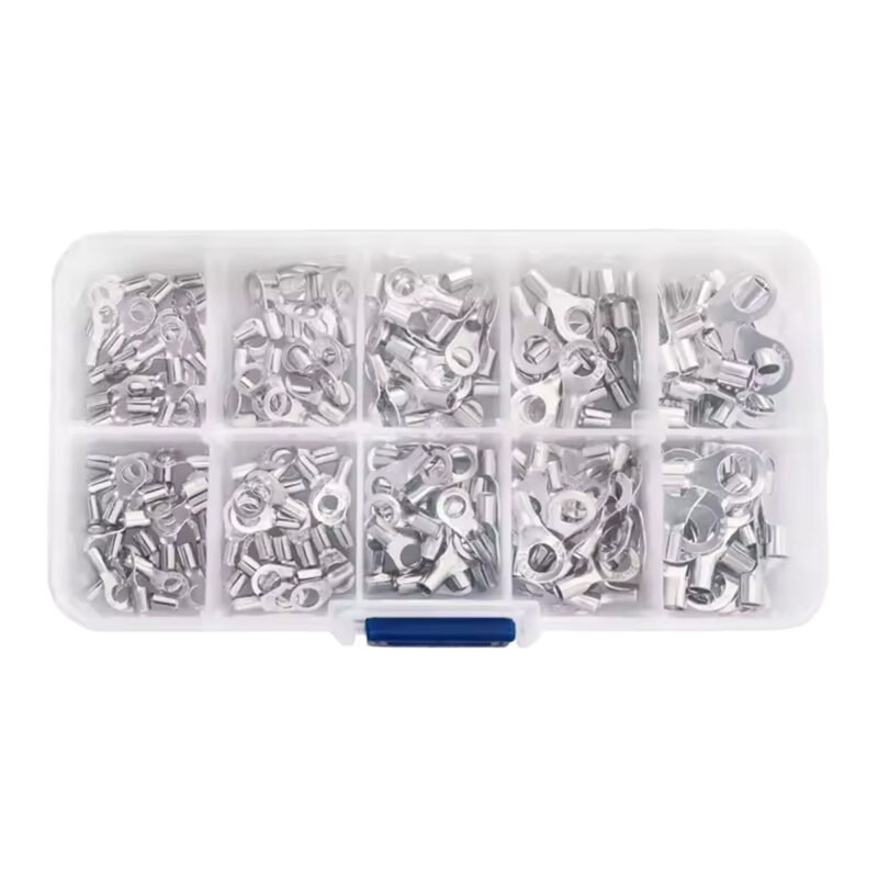 - Set van 200 niet-geïsoleerde ringklemmen voor een breed scala aan toepassingen.