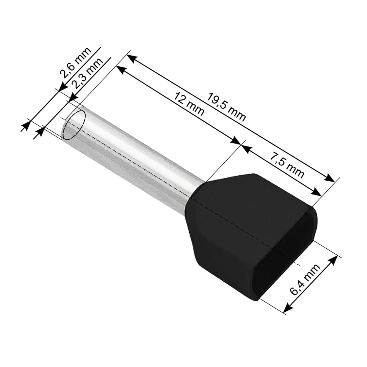 De VLTG Geïsoleerde Aderhuls 2×1.5/12mm Zwart is een essentieel product voor het veilig en efficiënt verbinden van elektrische draden. Deze eindhuls, ook wel kabelschoen genoemd, is ontworpen om de uiteinden van kabels te beschermen en te isoleren, waardoor een betrouwbare elektrische verbinding wordt gegarandeerd. De set bevat 20 stuks, ideaal voor zowel professionele als doe-het-zelf projecten.