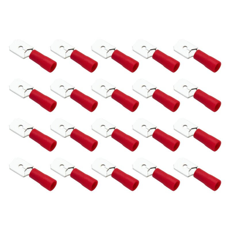VLTG Geïsoleerde Vlakstekker 4.8mm Rood – Faston Male Connector – Kabelschoen 0.5-1.5 mm² – 20 stuks