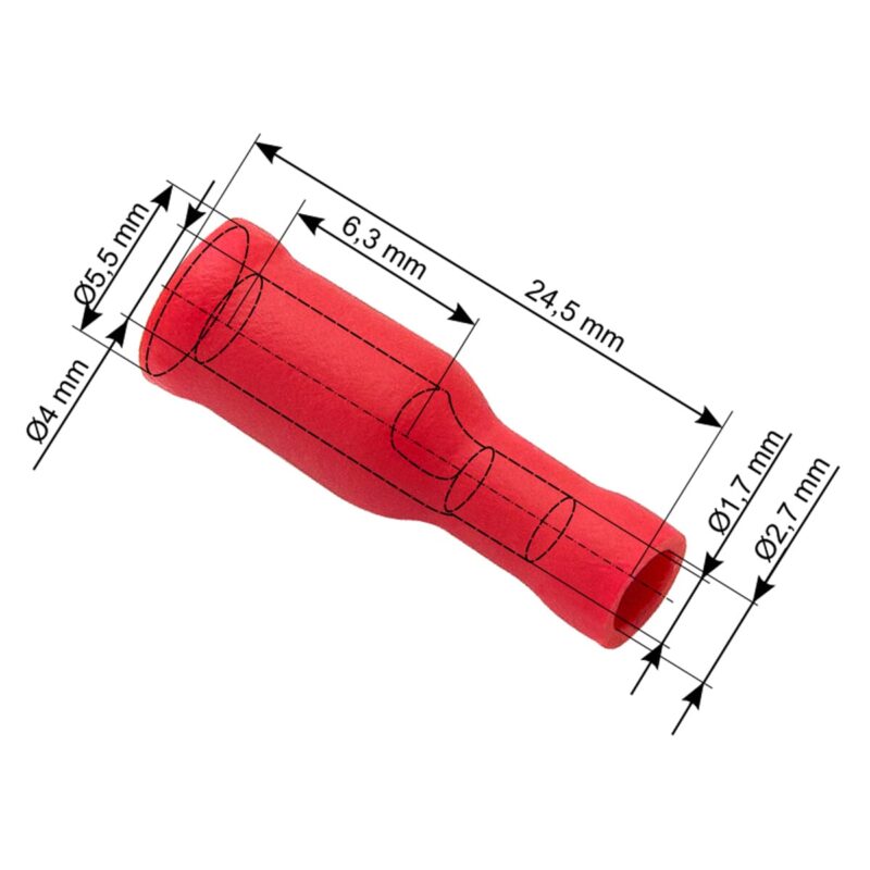 Met de Female Faston Isolator is de installatie eenvoudig en snel. De vlakstekkerhuls kan gemakkelijk op de juiste kabel worden geklemd, wat tijd bespaart tijdens montagewerkzaamheden.