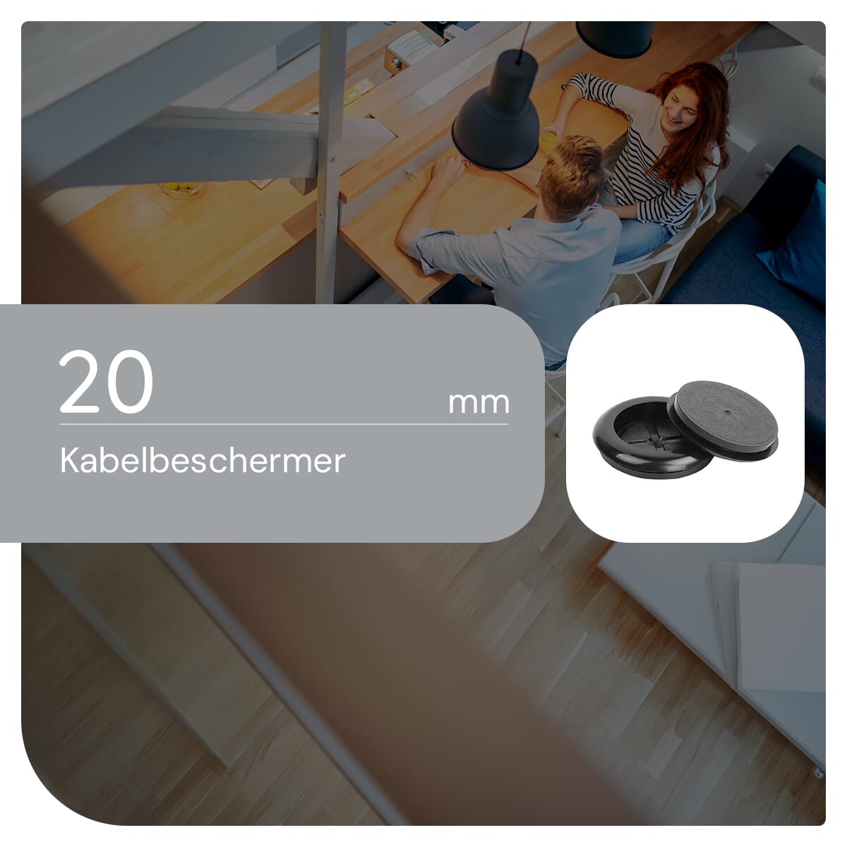 Kabelbeschermer 20mm – Rond – Rubberen Stof Plug voor kabels organiseren – Zwart – 2 stuks
