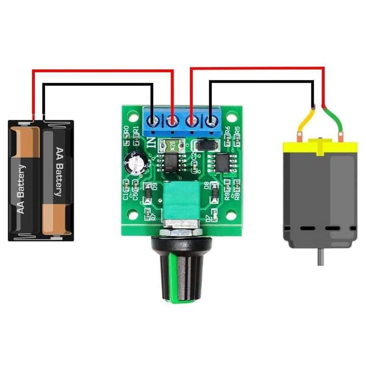 De Mini DC Speed Controller werkt door de spanning die naar de motor wordt gestuurd te moduleren, waardoor de snelheid van de motor kan worden aangepast. Door de draaiknop te draaien, kan de gebruiker de snelheid verhogen of verlagen, afhankelijk van de vereisten van het project.
