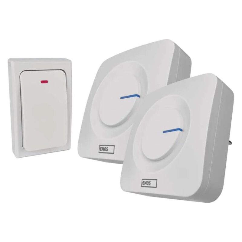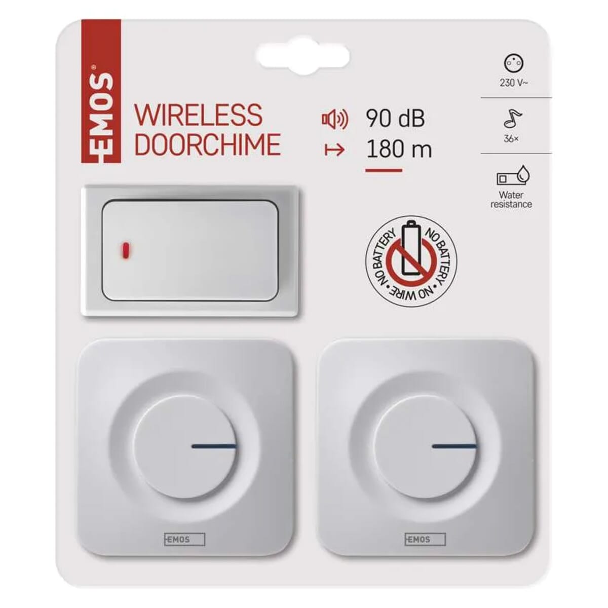 Emos Deurbel Draadloos – 2 Ontvangers – 180m Bereik – 36 Melodieën – IP65 – Wit