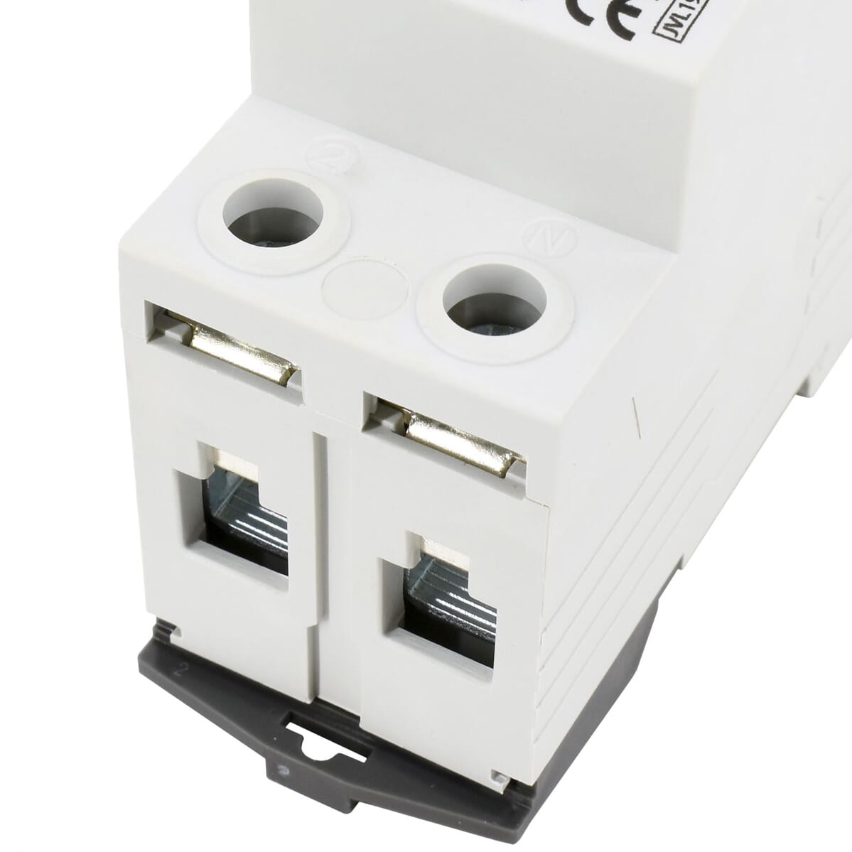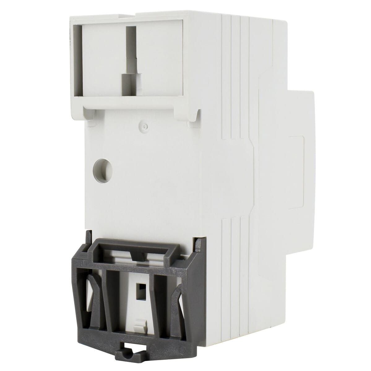 Deze compacte schakelaar past op een standaard 35mm DIN-rail en is ontworpen voor 230/240V~ installaties.