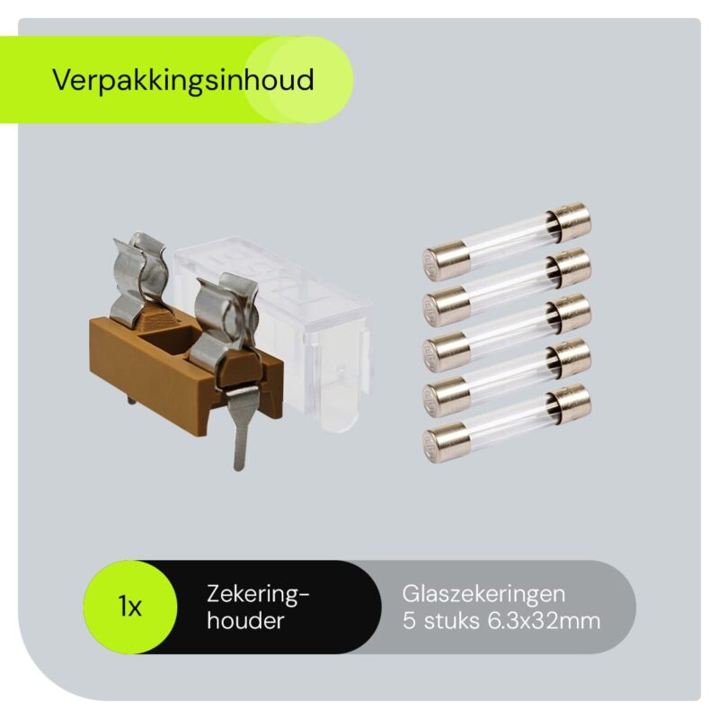 - Kan ik andere zekeringen gebruiken in deze houder? De houder is specifiek ontworpen voor 6.3x32mm zekeringen met een stroomsterkte van 2.5A. Gebruik van andere zekeringen wordt niet aanbevolen.