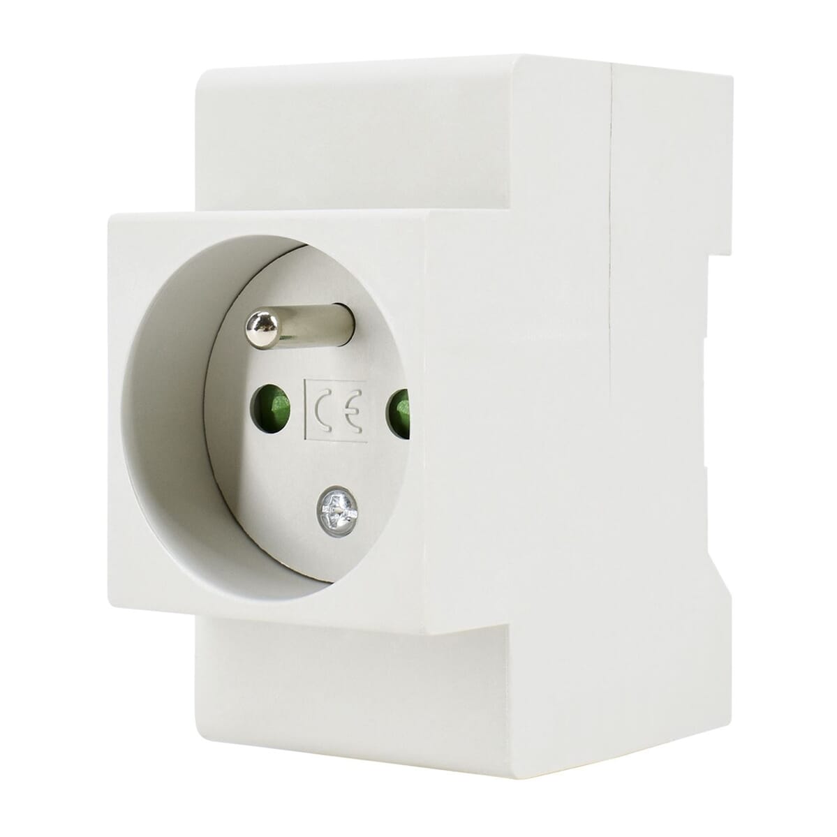 Dit DIN-rail stopcontact met penaarde is een opbouwmodel dat eenvoudig op een