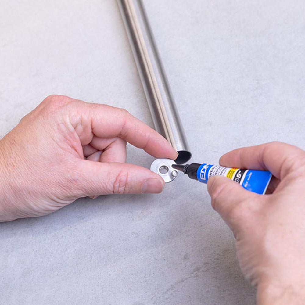- Breng een kleine hoeveelheid lijm aan op één van de oppervlakken.