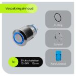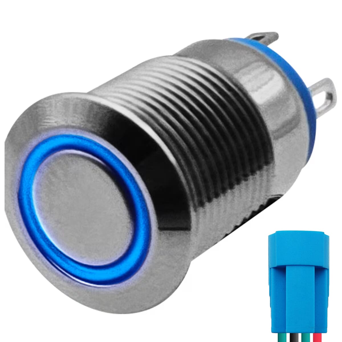 ProRide Metalen Drukschakelaar 12V ON-OFF – 12mm – Aan/uit schakelaar met Aansluitkabel – Spatwaterdicht – 12V/24V – LED Indicatie Blauw