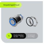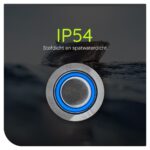 ProRide Metalen Drukschakelaar 12V ON-OFF – 12mm – Aan/uit schakelaar – Spatwaterdicht – 12V/24V – LED Indicatie Blauw